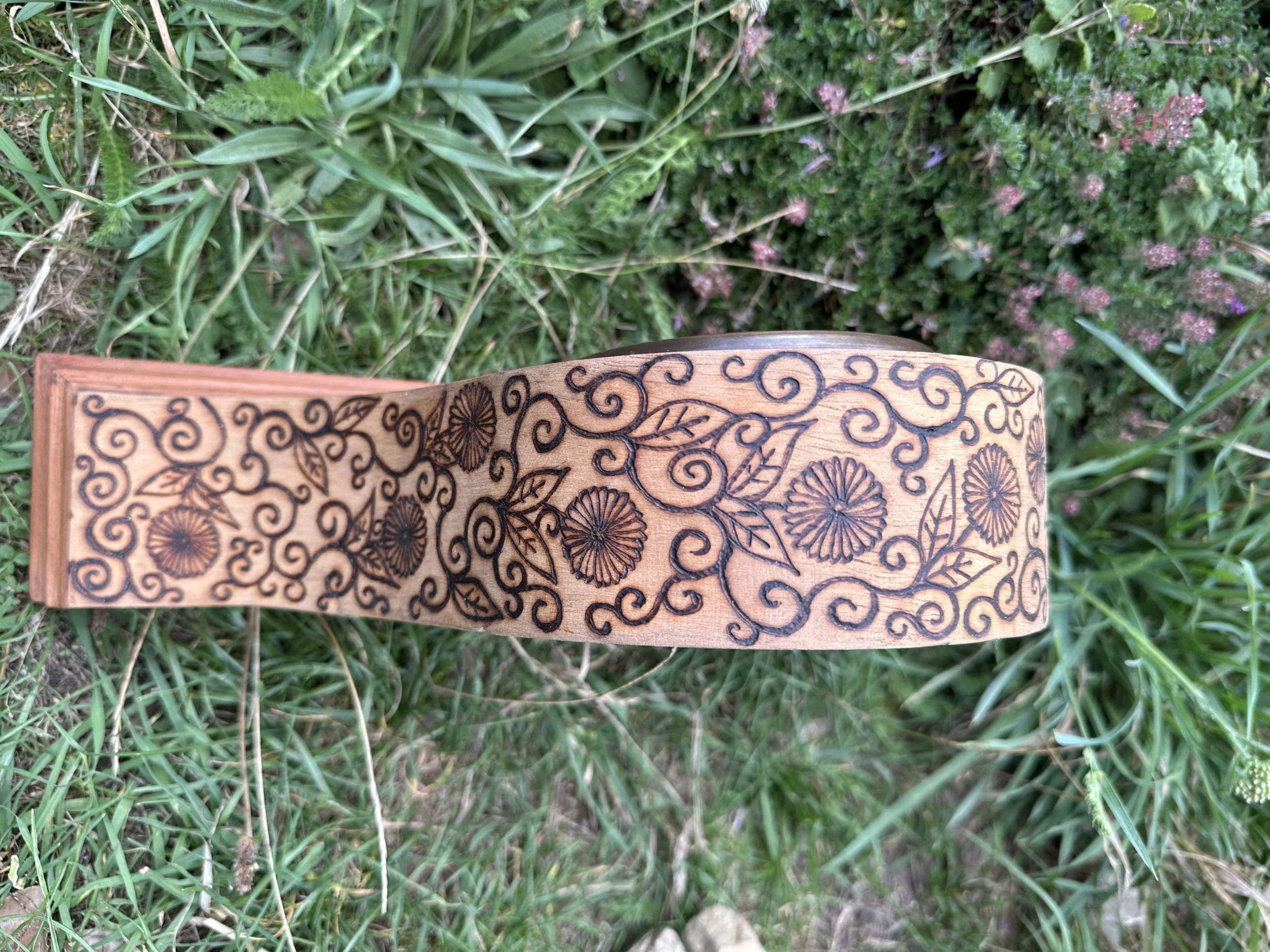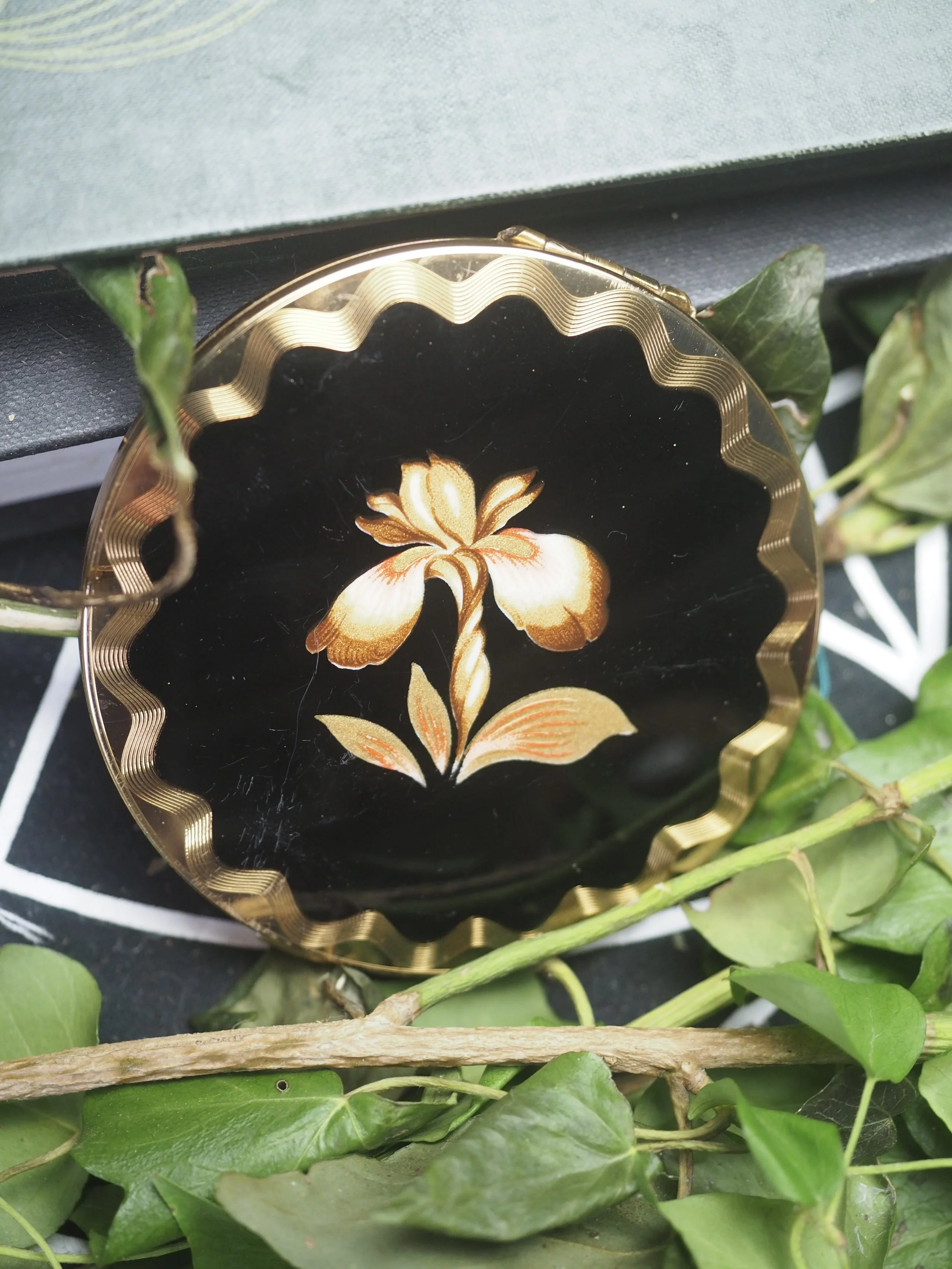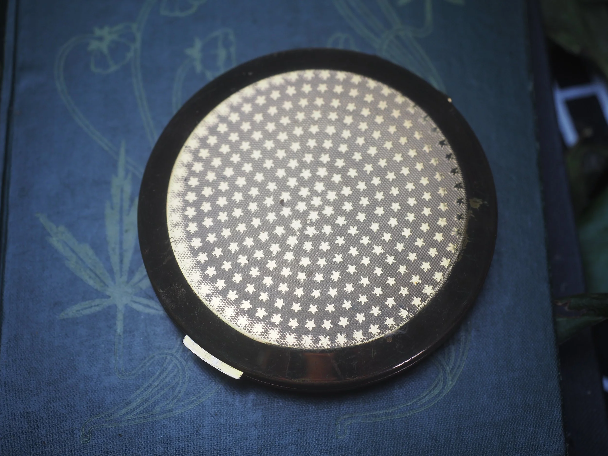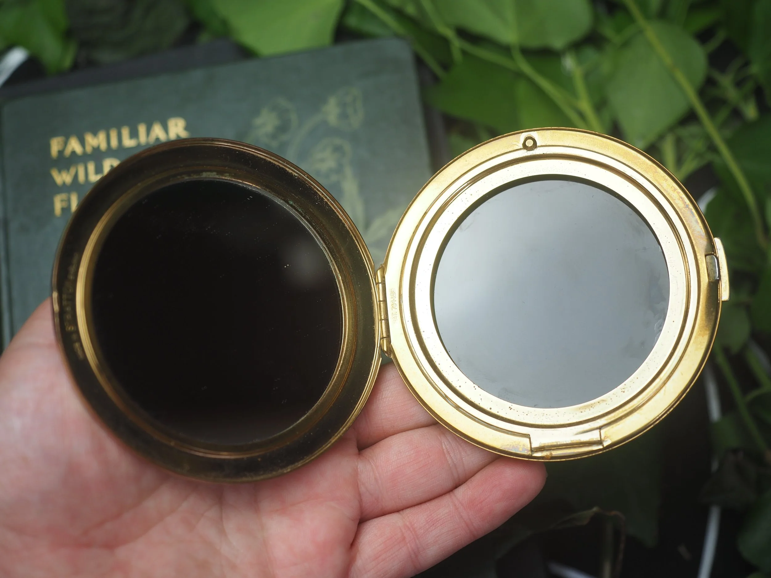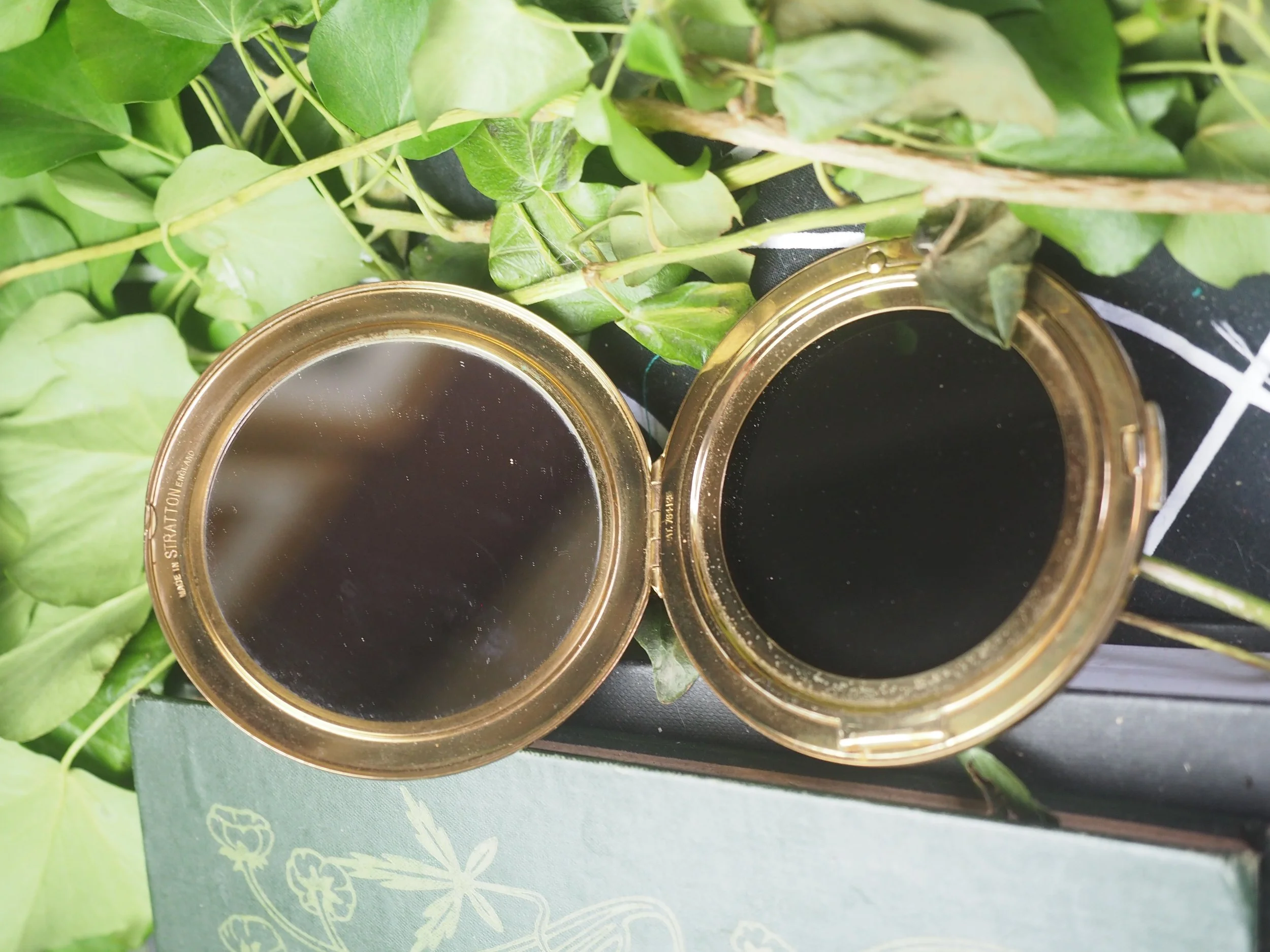 Behind the mirror are sealed herbs that I associate with scrying, and which I also use in the glass wash. One of the herbs is valerian root - which is pungent....some say it smells of old feet -I don't think the scent escapes!